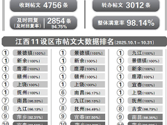 大江新闻《问政江西》帖文10月整体满意率为98.14%
