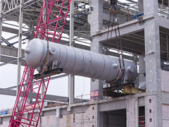 陕投信丰能源2×1000MW机组工程1号机组首台高压加热器顺利完成吊装