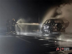萍乡一电动汽车行驶中突发自燃 20分钟扑救后仅剩框架(图)