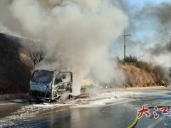 萍乡一货车行驶中突发火灾 消防20分钟成功处置