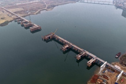 江西余干:新黄金埠特大桥进入施工快车道