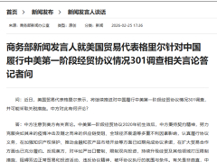 商务部新闻发言人就美国贸易代表格里尔针对中国履行中美第一阶段经贸协议情况301调查相关言论答记者问