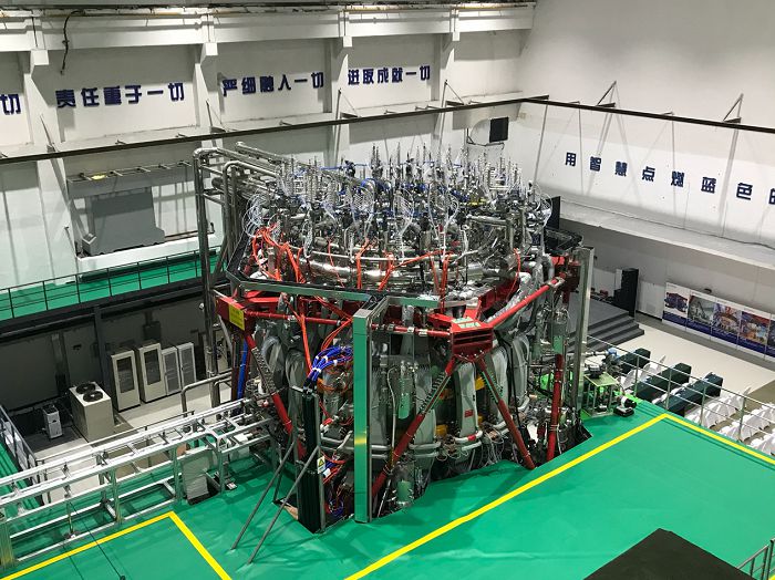 目前,东方超环(EAST)、中国环流器二号A(HL-2A)、M(HL-2M)都属于“人造太阳”实验装置。钟武律介绍,此次建成的中国环流器二号M装置(HL-2M)是我国新一代先进磁约束核聚变实验研究装置。他说:“这个装置它是我国自主设计建造,采用了先进的结构和控制方式,具有先进的偏滤器位形的优势。它是我国目前规模最大,参数最高的先进的托克马克装置,它的体积是目前国内现有装置的两倍以上,等离子体的电流的能力可以提高到2.5个兆安培,等离子体离子的温度可以达到1.5亿度的样子,也就是说太阳核心温度的10倍。”