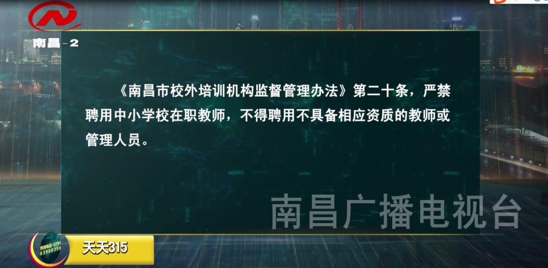 《南昌市校外培训机构监督管理办法》第二十条明文规定,严禁聘用中小学校在职教师,不得聘用不具备相应资质的教师或管理人员。看来这位工作人员也很清楚,该教育机构的做法涉嫌违规。
