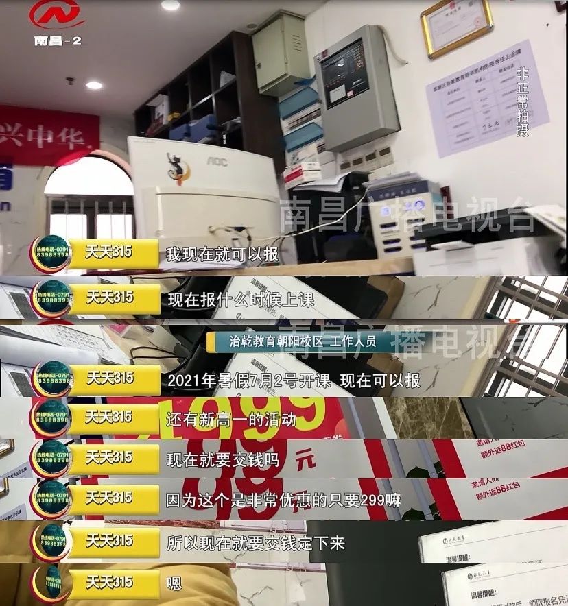 《南昌市校外培训机构监督管理办法》第十九条规定,培训机构不得超出培训对象所处年纪的课程标准开展培训,严禁“超纲教学”“提前教学”。治乾教育朝阳校区的违规教学情况不言自明。同时,工作人员介绍,现在报名的话,优惠力度特别大。