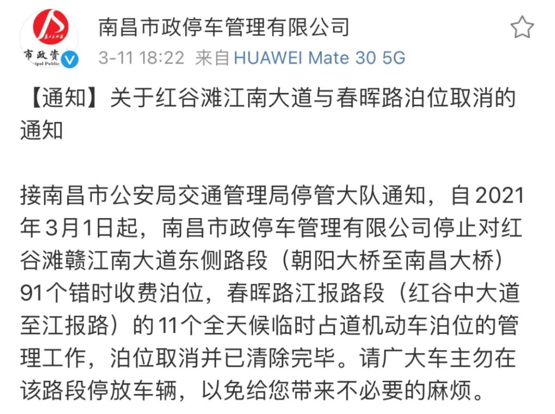 停止对红谷滩赣江南大道东侧路段(朝阳大桥至南昌大桥)