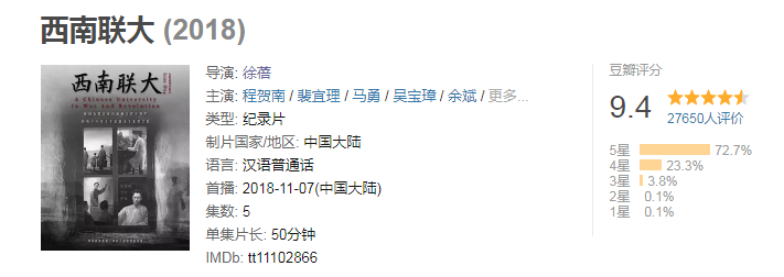《西南联大》豆瓣评分9.4
