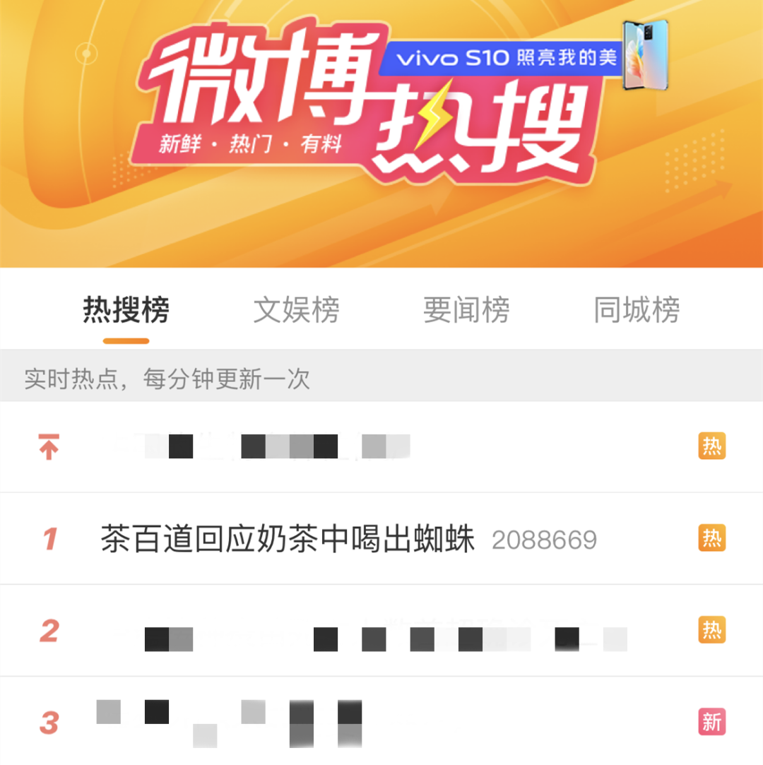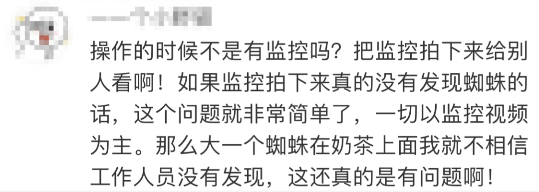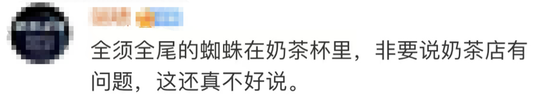 10月6日,浙江宁波一顾客称,从慈溪一家茶百道点外卖饮品时,在其分装的奶盖中发现蜘蛛。
