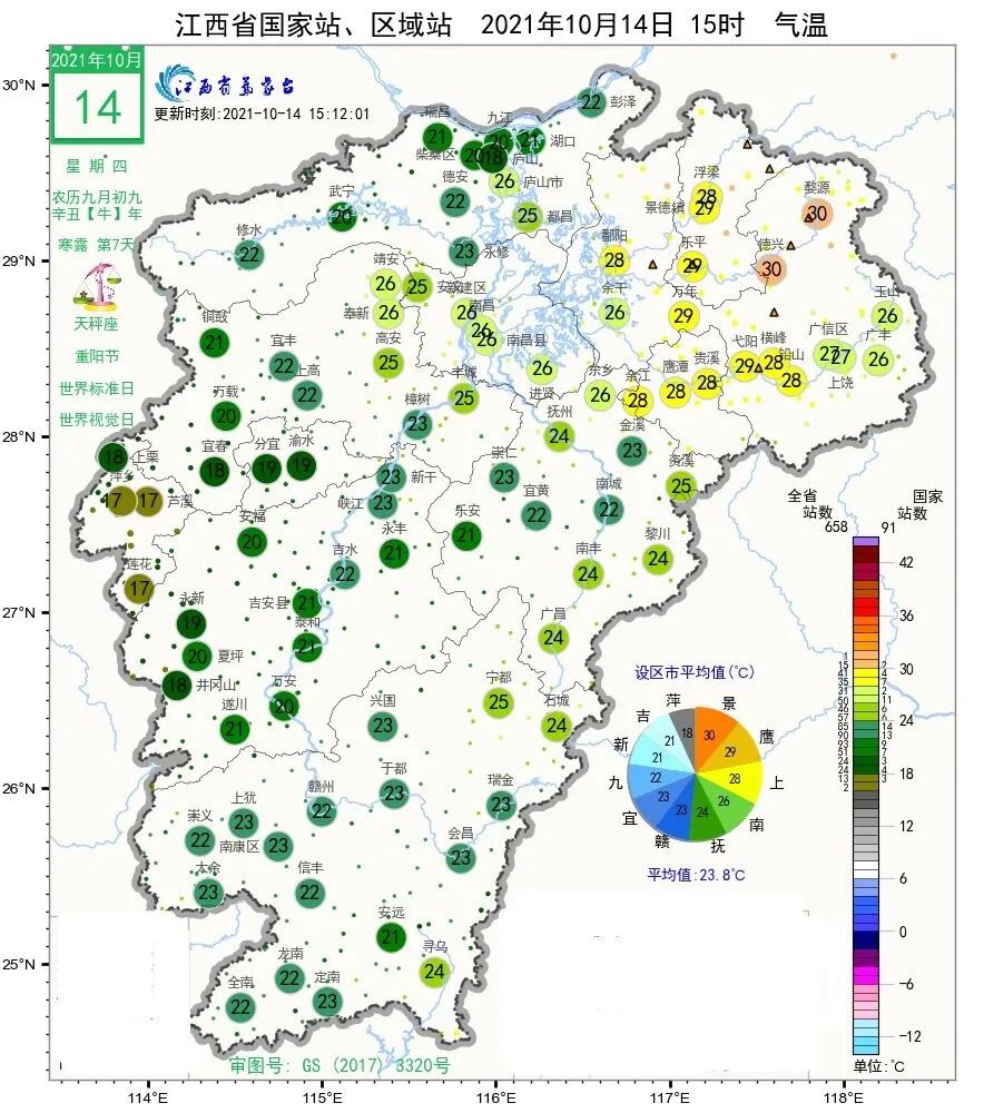 明天开始,一股较强冷空气又将携风带雨,到达江西省境内。