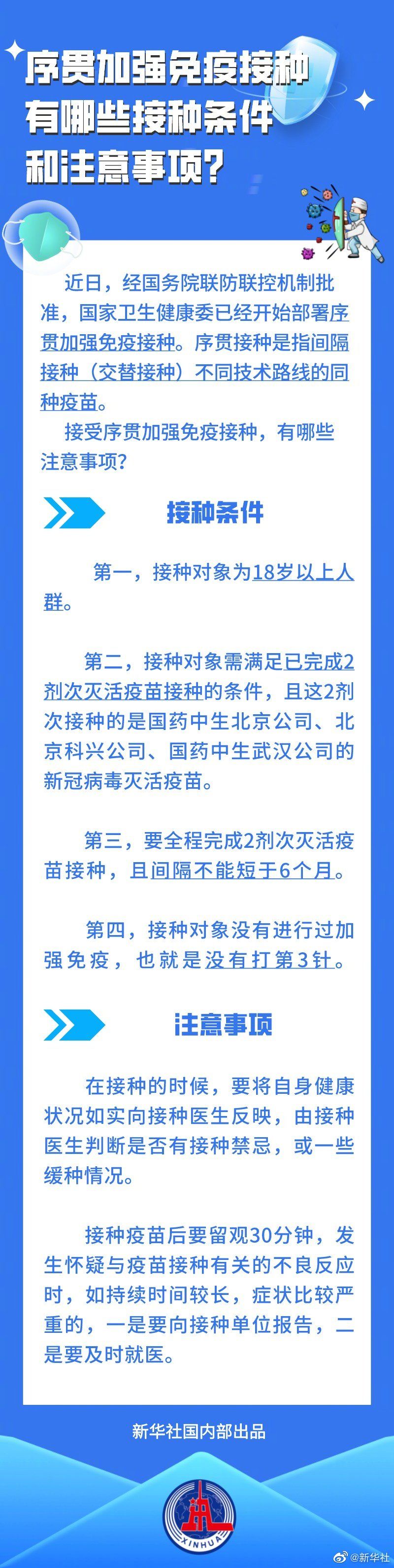 近日,经国务院联防联控机制批准,国家卫生健康委已经开始部署序贯加强免疫接种。序贯接种指间隔接种(交替接种)不同技术路线的同种疫苗。哪些人群可以接受序贯加强免疫接种?序贯加强免疫接种有什么特别注意事项?戳图,看来自国务院联防联控机制的权威解答。(记者顾天成、徐鹏航 来源:新华社微博)