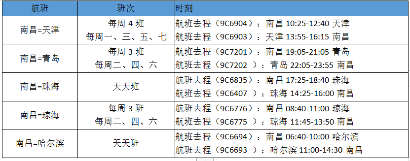 民航夏秋航季即将正式开始。记者从南昌昌北国际机场了解到,3月27日起,昌北机场将陆续开通南昌-天津、南昌-青岛、南昌-珠海、南昌-琼海、南昌-哈尔滨5条新航线。这5条新航线也将由春秋航空执飞。