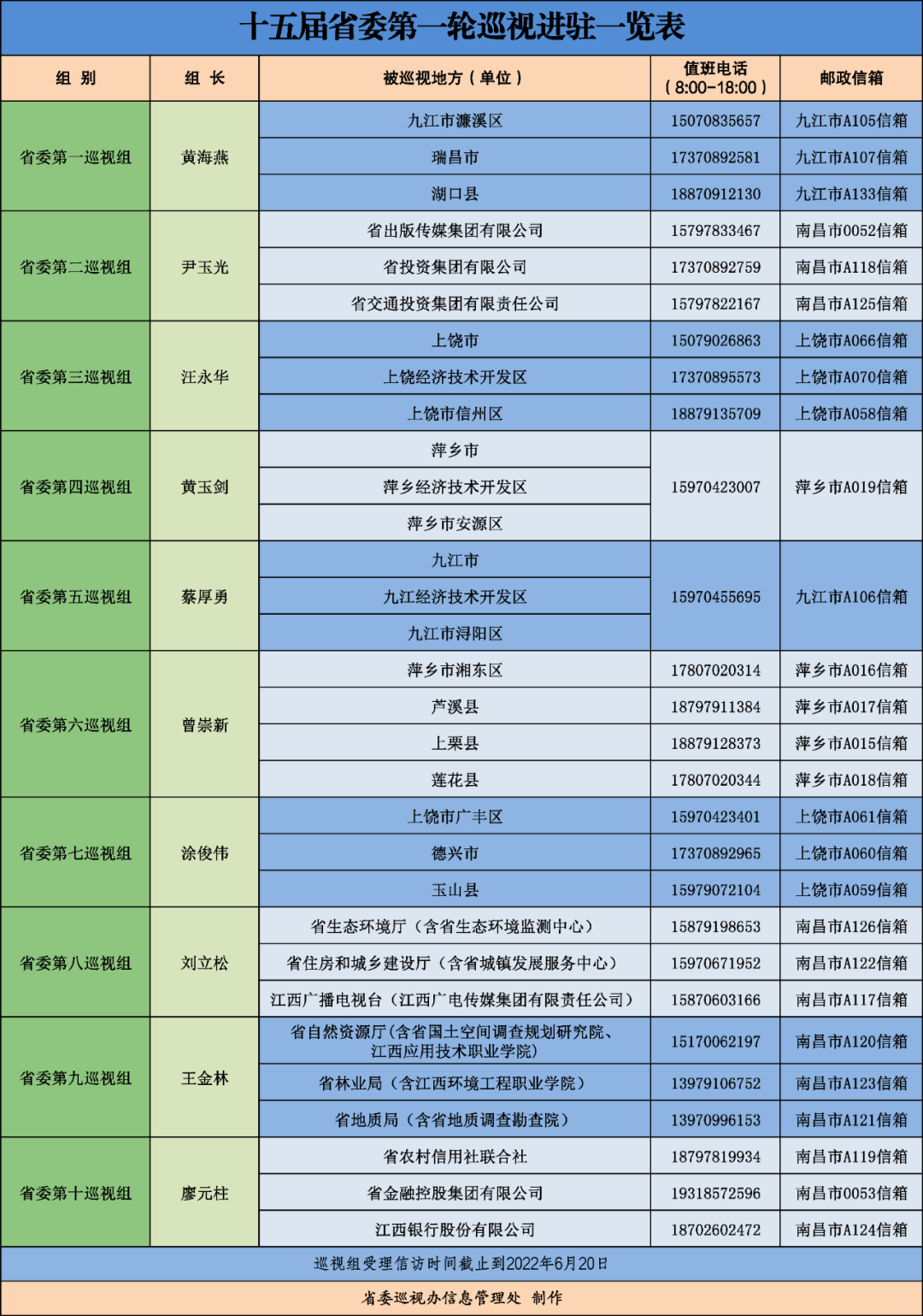 江西省委10个巡视组已全部进驻!组长名单、联系方式公布!