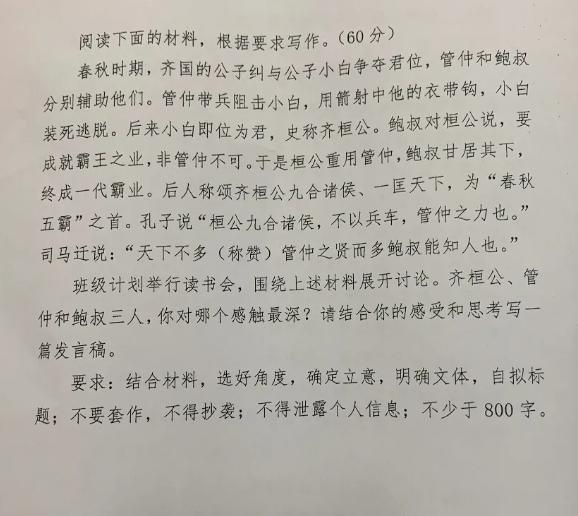 要求:选准角度,确定立意,明确文体,自拟标题;不要套作,不得抄袭;不得泄露个人信息;不少于800字。