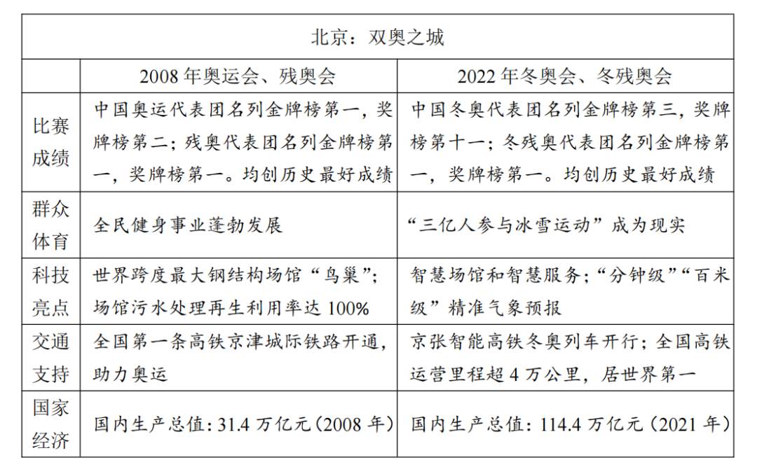双奥之城,闪耀世界。两次奥运会,都显示了中国体育发展的新高度,展示了中国综合国力的跨越式发展,也见证了你从懵懂儿童向有为青年的跨越。亲历其中,你能感受到体育的荣耀和国家的强盛;未来前行,你将融入民族复兴的澎湃春潮。卓越永无止境,跨越永不停歇。