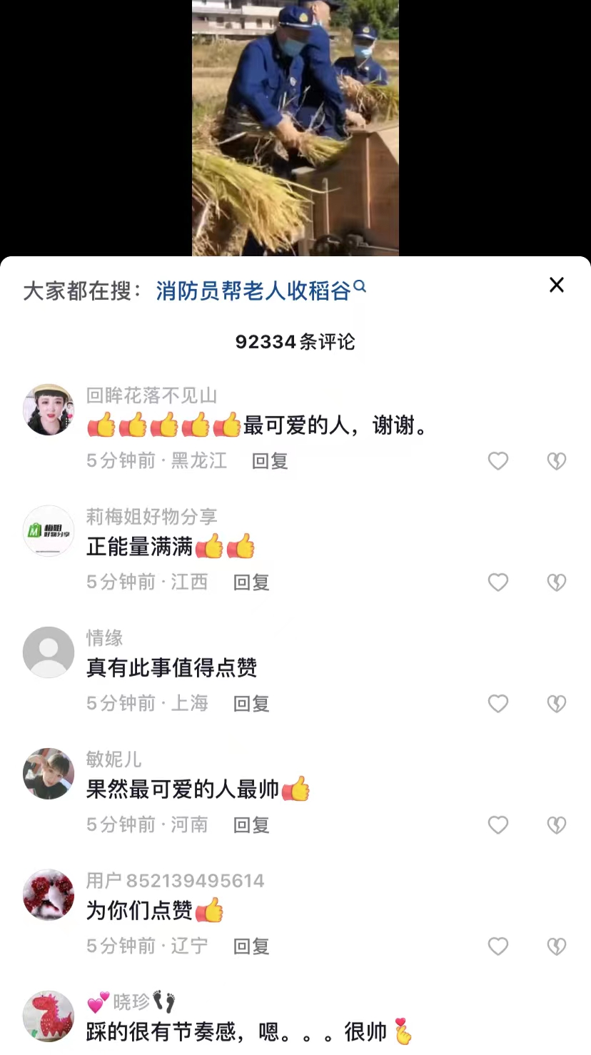 赣州13名消防员归队途中帮七旬老人收割500斤稻谷
