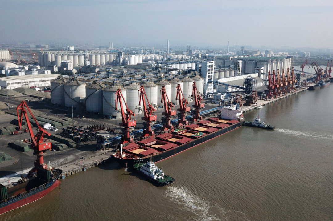 1月7日,载有6.8万吨巴西玉米的货轮抵达广东麻涌港。新华社记者 黄国保 摄