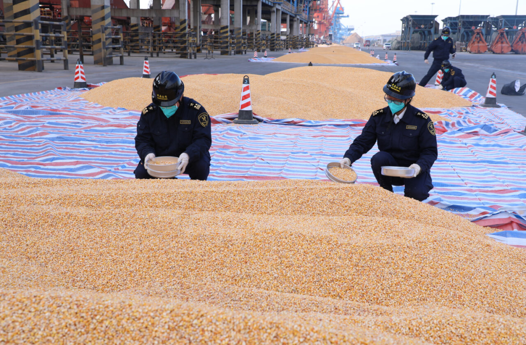 1月7日,海关人员对巴西玉米进行抽检。新华社记者 黄国保 摄