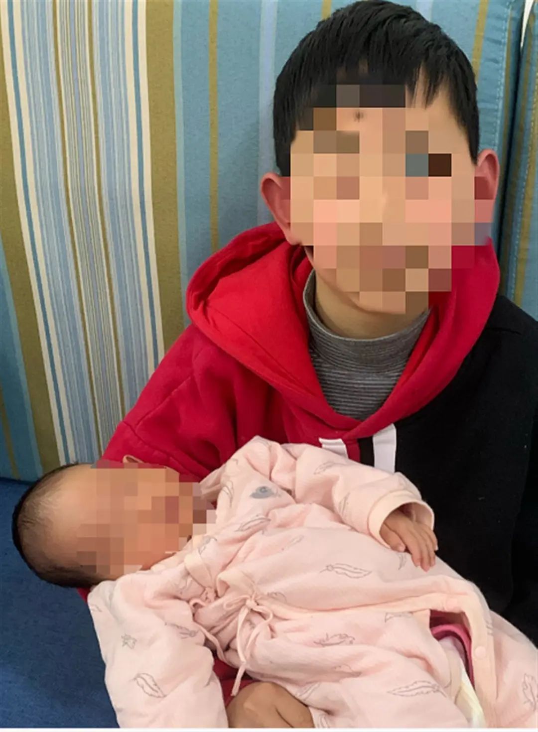 哥哥紧紧抱着相隔一轮“都属兔”的弟弟