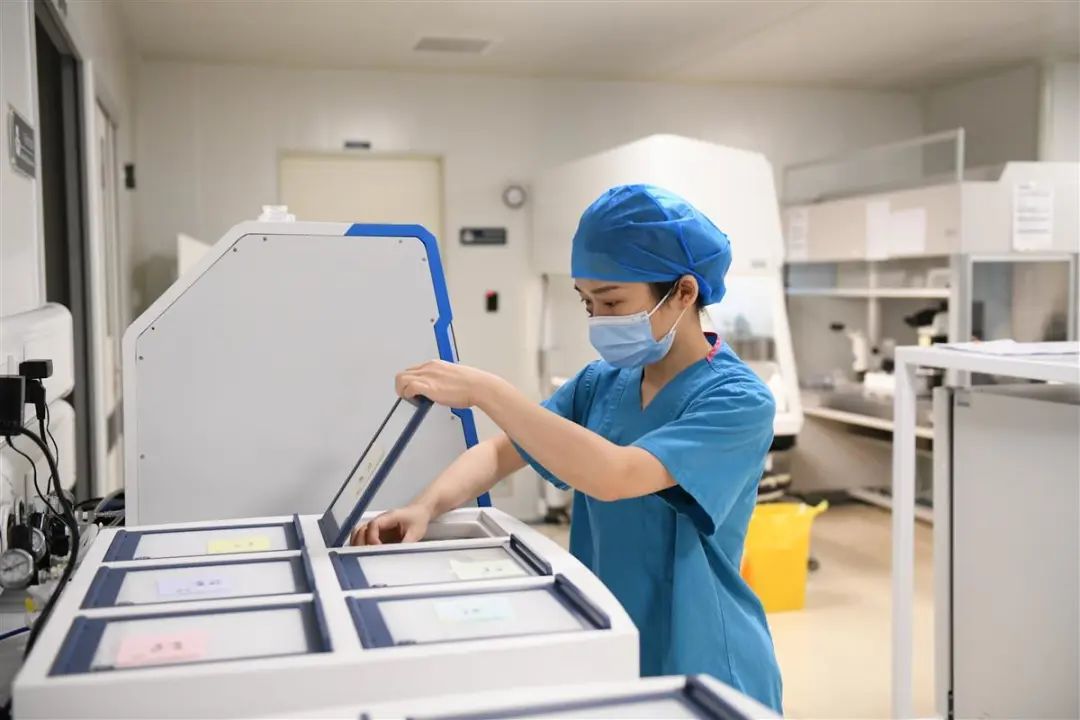 经过周密筹备,2022年5月,专家团队取出了唐女士当年冷冻的胚胎,并开启了“唤醒”流程。在液氮罐中超低温保存的胚胎,被迅速放入解冻液中。胚胎学专家在显微镜下精细操作,先复苏解冻,再培养3天,便收获了2枚优质囊胚。随后,这2枚承载着生命希望的“种子”被移植到唐女士体内。11天后,唐女士通过血液HCG检测确定自己怀孕了。