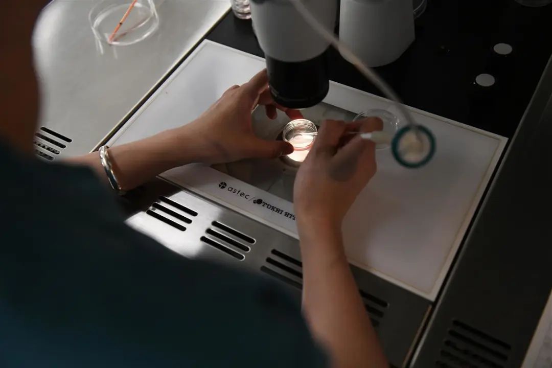 胚胎师将“唤醒”的胚胎置于培养箱中培养
