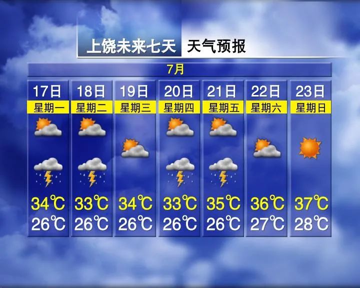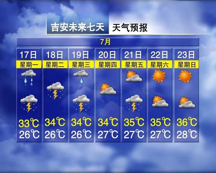 19~22日,赣北部分地区有阵雨或雷阵雨,赣中、赣南晴天多云,局部地区午后到夜间有阵雨或雷阵雨;