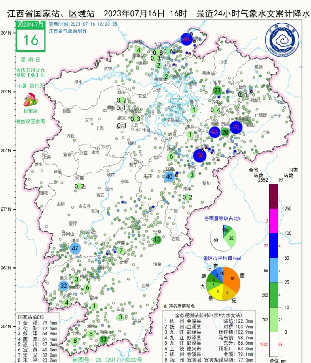江西省气象台7月16日15时35分发布大风蓝色预警信号: