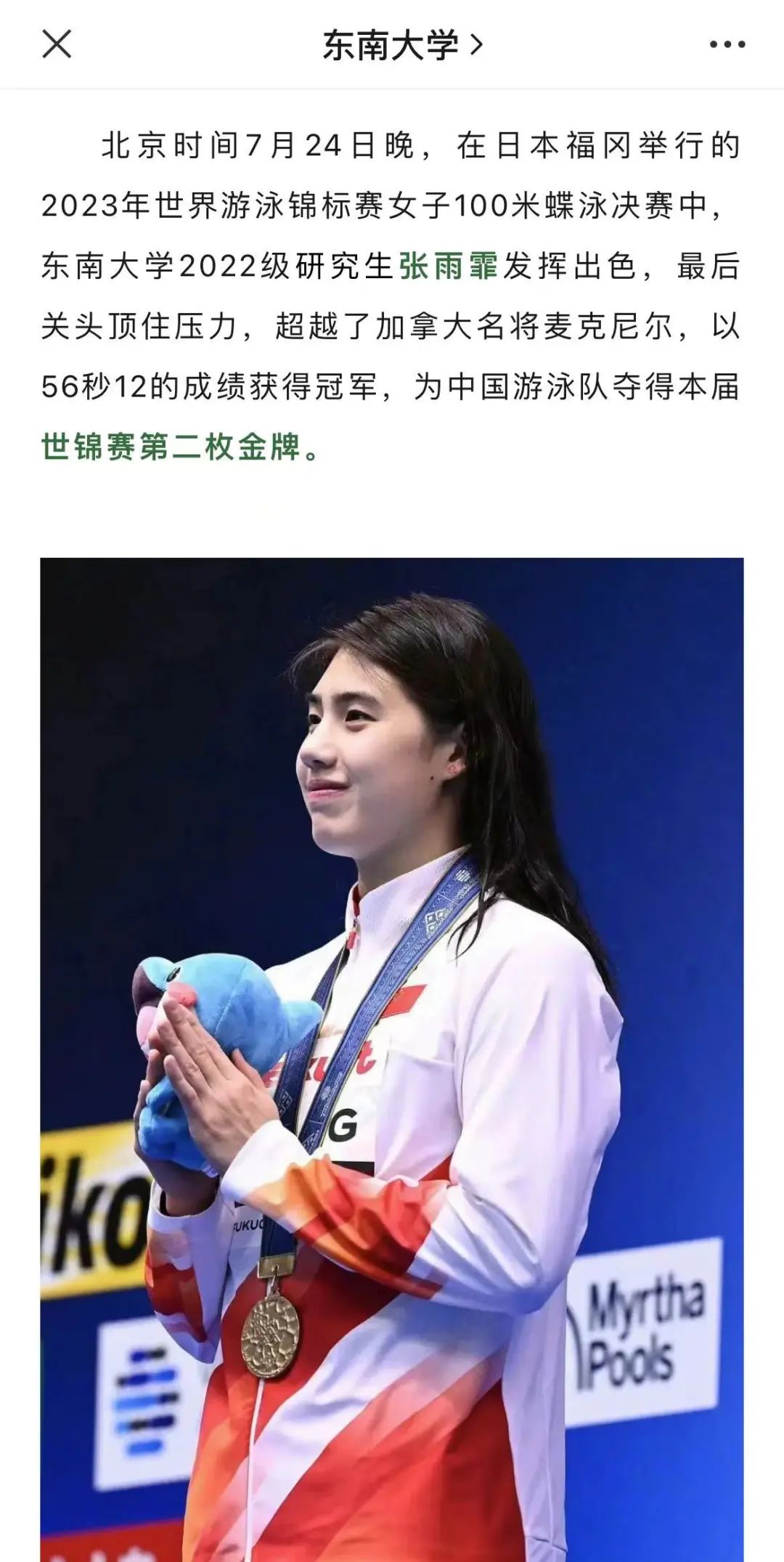 和张雨霏一起从世锦赛泳池