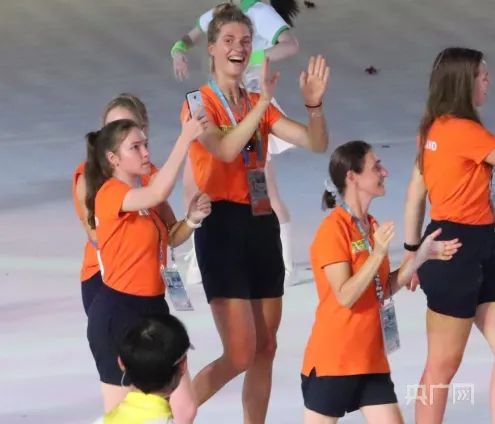 中国代表团笑容灿烂(央广网记者 苏莉 摄)