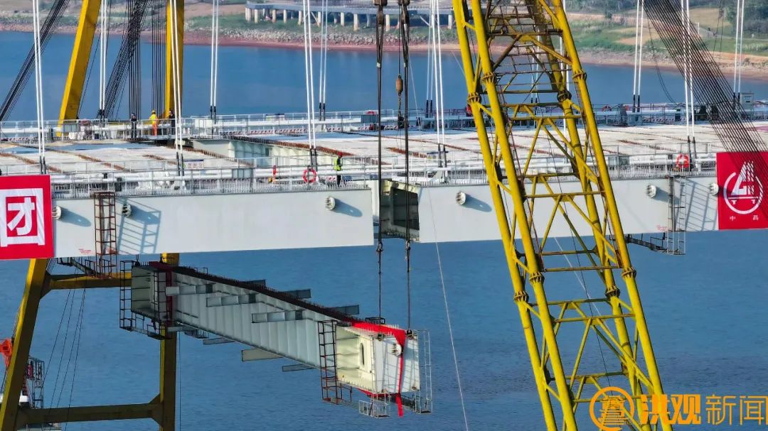 随着主梁最后一块合龙段的精准吊装,