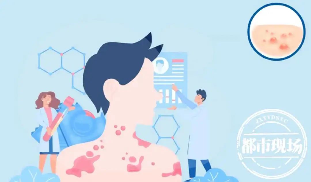 江西省疾控中心应急办副主任 潘欢弘:目前疫情的临床特征来看,以发热、皮疹和淋巴结肿大为主,它的皮疹不像2022年之前的皮疹,全身发疹子,这部分人群目前发疹子部位很隐蔽,一般在肛门、生殖器。日常生活中,如果发现了有发热、皮疹的患者,尽量不要跟他有过多密切接触,因为猴痘的传播还是以接触传播为主,疱疹液的病毒载量是非常高的。