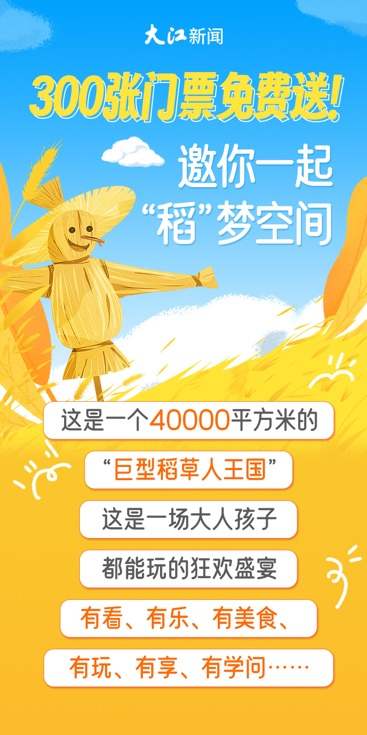 大江网/大江新闻客户端讯 全媒体记者张瑜报道:这是一个40000平方米的“巨型稻草人王国”,这是一场大人孩子都能玩的狂欢盛宴,有看、有乐、有美食、有玩、有享、有学问……大江新闻客户端推出《邀你一起“稻”梦空间》宠粉活动。