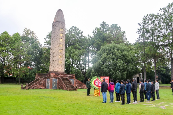 在叶坪一苏大旧址,大家怀着对先烈崇敬的心情,脚踏革命先烈鲜血染成的道路,向红军烈士纪念塔敬献花圈,并在塔前重温入党誓词。
