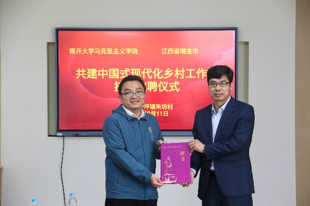 在叶坪镇朱坊村,江西理工大学化学化工学院副院长、应化党支部书记刘遂军参加了南开大学与瑞金市共建中国式现代化乡村工作站挂牌致聘仪式并受聘为乡村工作站校友站长。刘遂军对朱坊村的发展新貌表示祝贺,对能够以南开校友、助力高校的身份参与中国式现代化乡村工作站的共建工作表示感谢。他提到,作为校友站长,将全力参与工作站建设,发挥好衔接南开大学与瑞金市双方资源的桥梁作用,为乡村振兴服务。