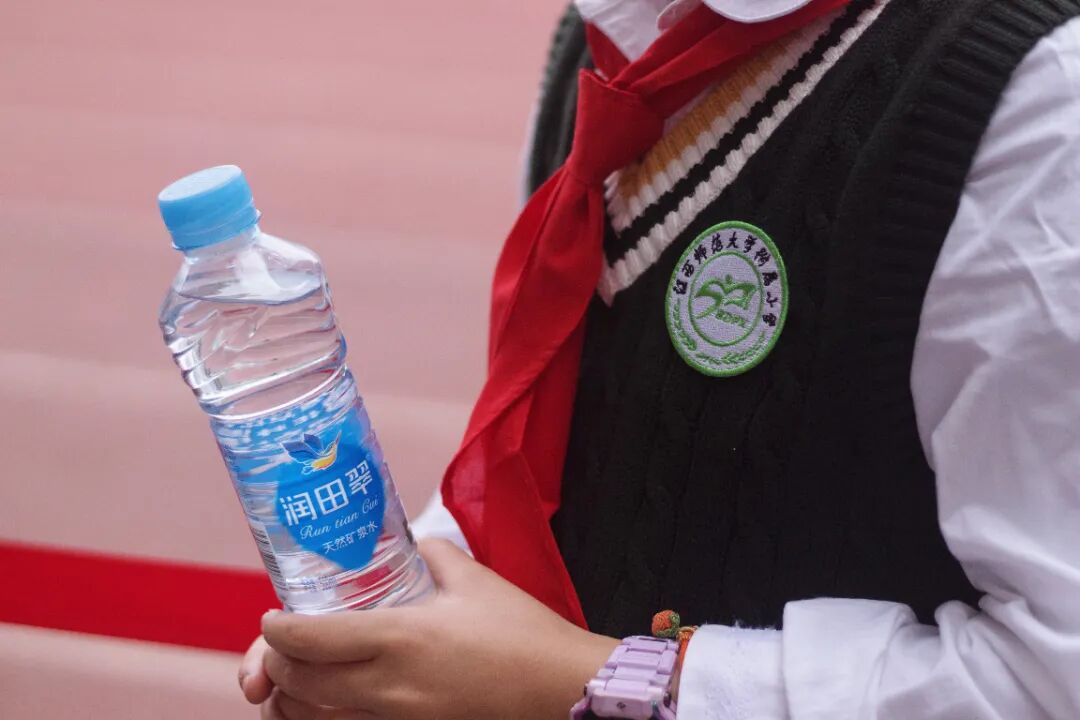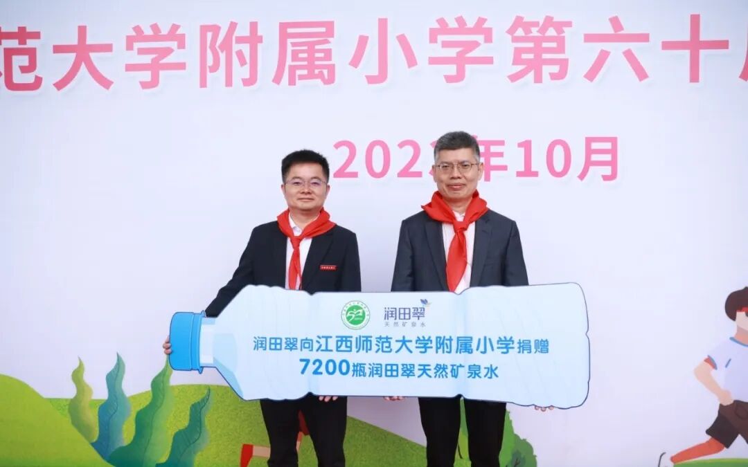 ▲江西润田向江西师范大学附属小学捐赠矿泉水