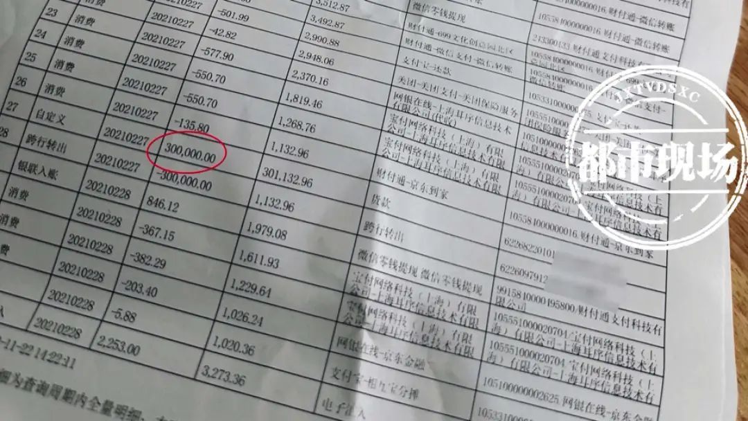 消费者 刘女士:2021年2月27号的时候 ,就给这位营销转了30万元人民币;第二次是4月底,也是4月27号,就再给营销转过一次158888(元)。