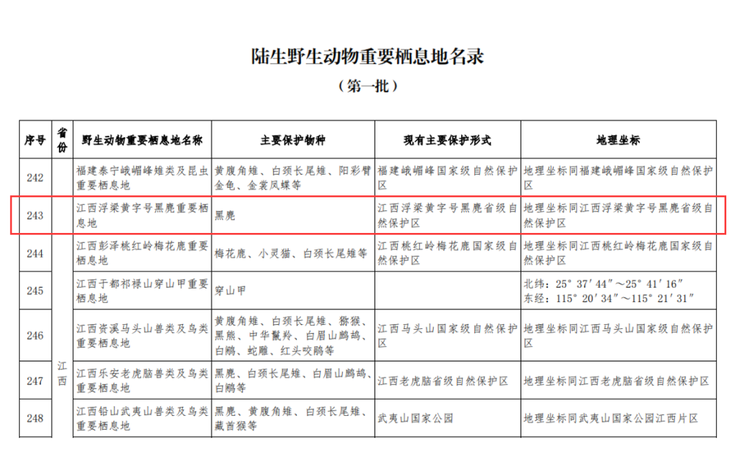 浮梁黄字号黑麂重要栖息地入选