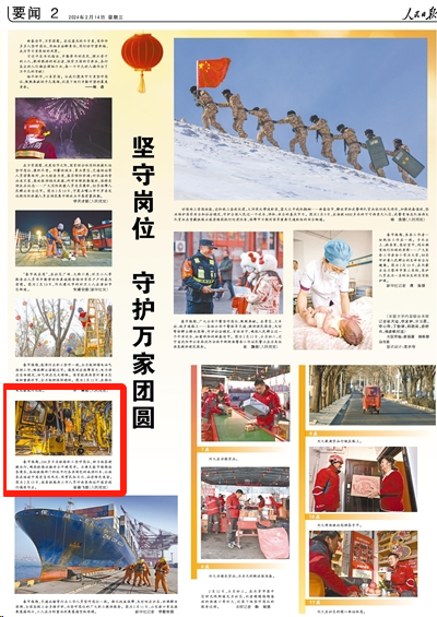 2月12日,央视《中国新闻》报道:春节假期,还有一群人坚守在岗位上,默默守护着万家灯火,阖家团圆。