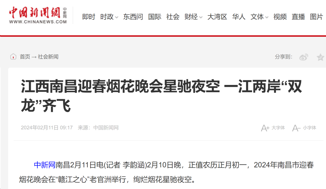 关注2024年南昌迎春烟花晚会:科技助力庆佳节