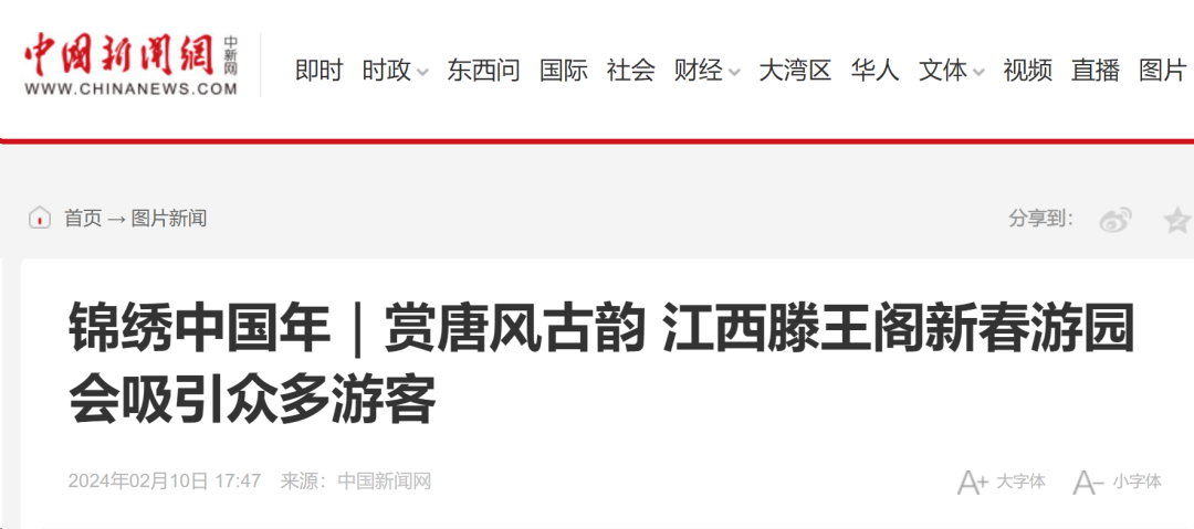 赏非遗大秀、看国潮演绎、享唐风古韵……2月10日,中国农历正月初一,江西南昌滕王阁景区推出“滕王阁里过个中国年”新春游园活动,游客们在此感受滕王阁的风貌与文化底蕴,沉浸式体验红火热闹年。