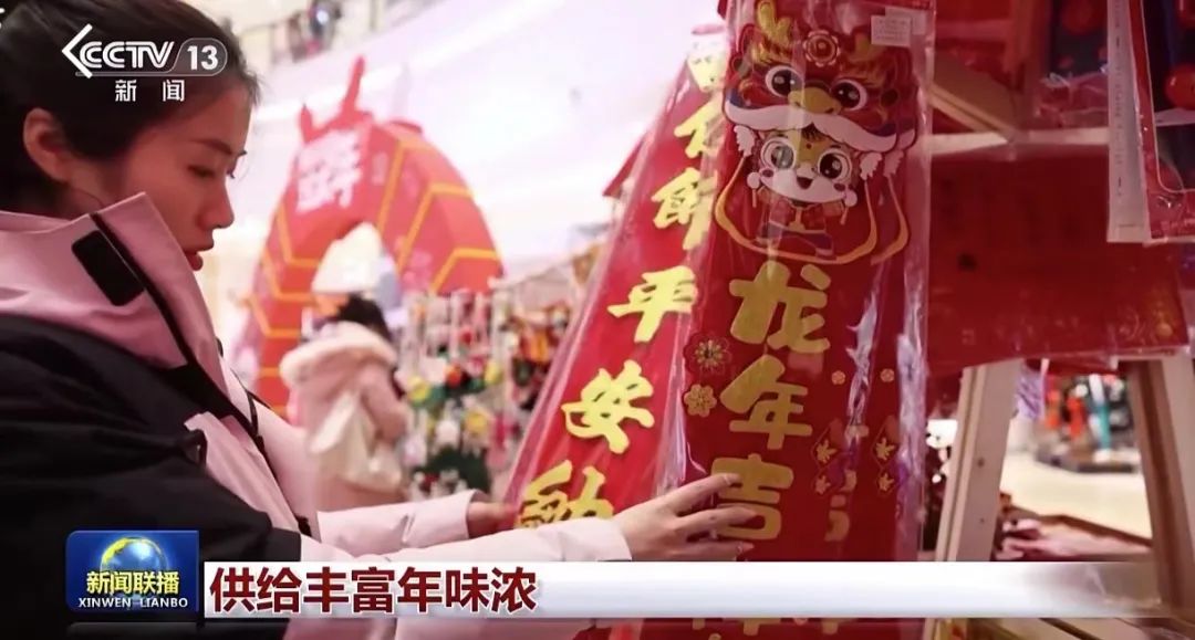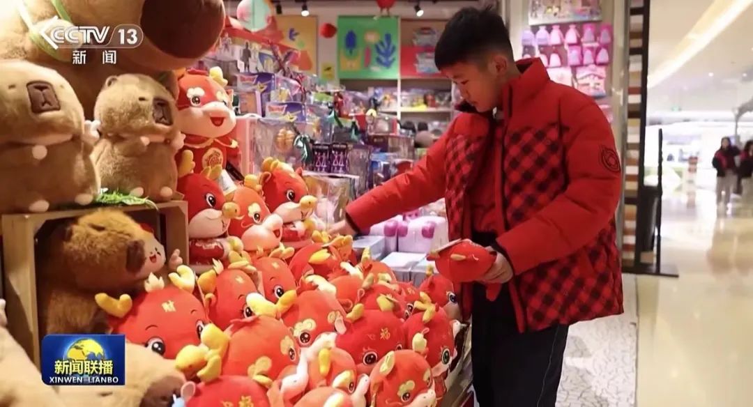 新春至,年味浓。各地丰富市场供给,优化消费体验,满足节日期间多元化消费需求。迎接龙年,融合传统文化和时尚气息的“龙元素”年货正在热销。江西南昌的年货集市里,人们争相购买龙形摆件、挂饰、玩偶等文创产品。