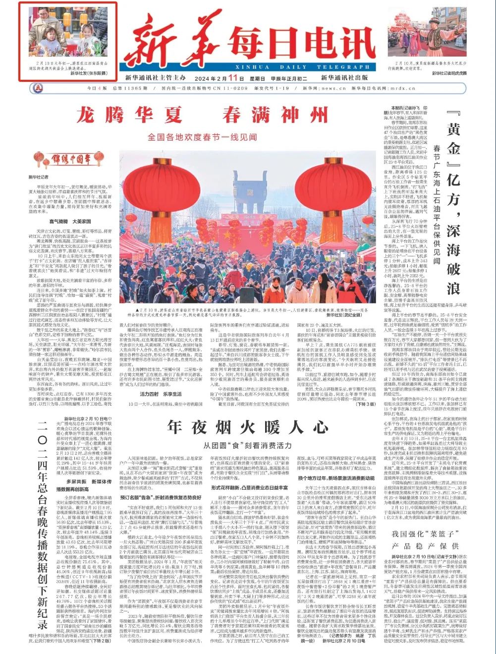 2月11日,央视《新闻联播》报道:祖国各地流光溢彩喜气洋洋,人们在欢声笑语中共庆佳节,让我们走进“锦绣中国年”。
