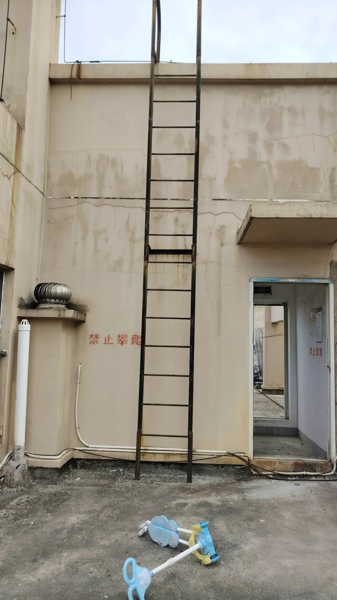敲门无人应答便自行向楼顶攀爬