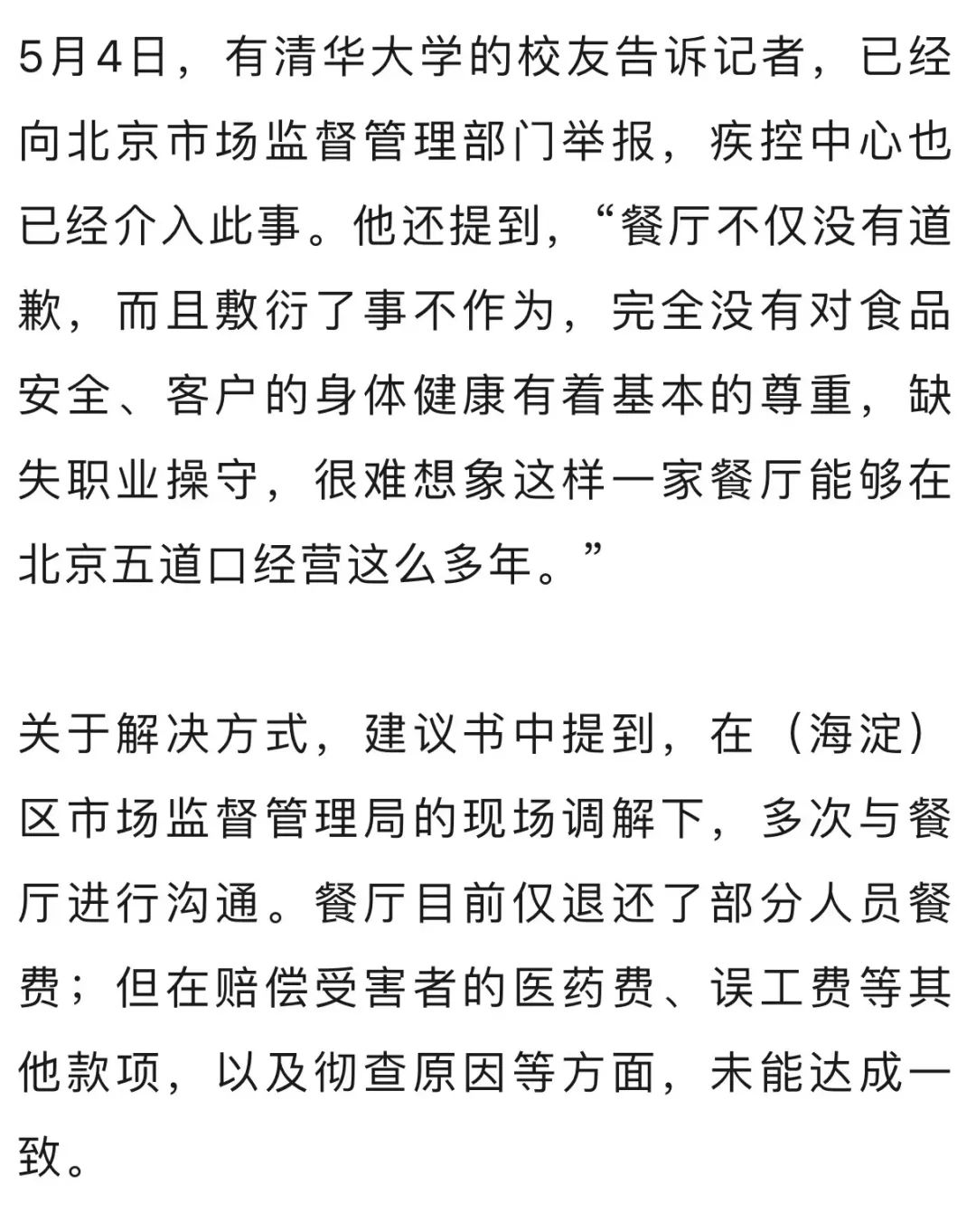 上百名清华校友校外聚餐食物中毒?疾控部门已介入