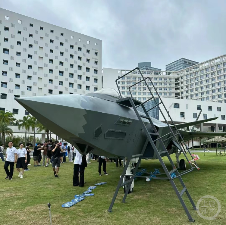 这名工作人员还介绍,这架“歼-20”是用板车拉过来的,运输的时候拆掉了机翼,来到校园后再重新组装好,配套的还有导弹模型,“对这个模型感兴趣的学生很多,像小红书上面到处都是过来打卡拍照的(照片)。昨天第一天,大概有上千人前来参观。”