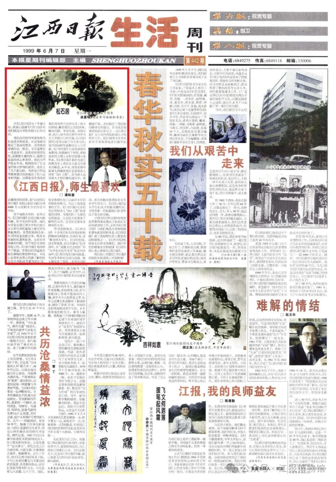 1999年6月7日,是《江西日报》创刊50周年,当天第五版刊发了《春华秋实五十载》系列报道,其中一篇《江西日报,师生最喜欢》(作者:潘际銮,时任南昌大学校长),文中称:在《江西日报》五十华诞之际,我衷心感谢《江西日报》对我们南昌大学的热情关注和支持。