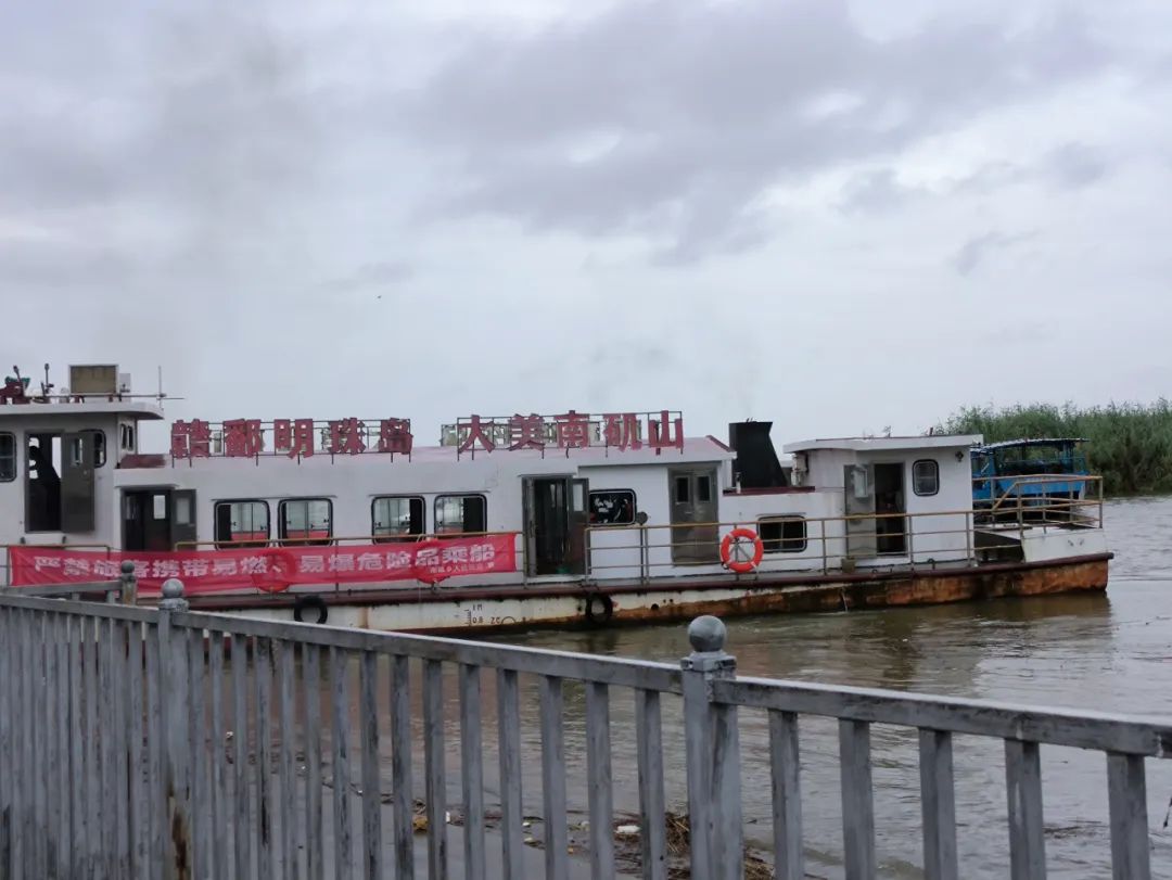 湖风带着雨水打向甲板,一望无垠的湖面远处有村庄的影子,近处有鸟藏身芦苇荡,一条鱼儿跳出湖面,跃过船头。“近些年环境确实好了不少。”船长万师傅从小生活在南矶的渔船上,2020年禁渔后,乡政府收购了10元一票的私人班船,向村民、游客免费开放,万师傅也就这样成了第一任船长。