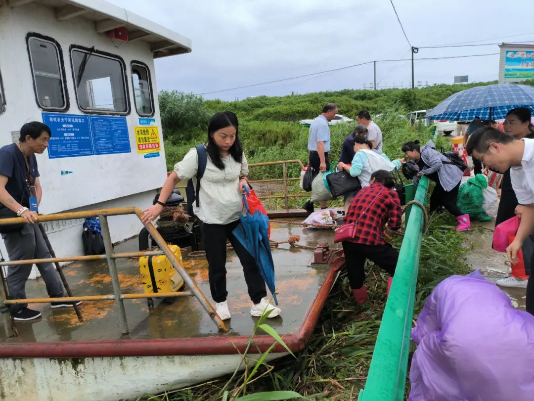 乘船前往南矶乡蹲点采访