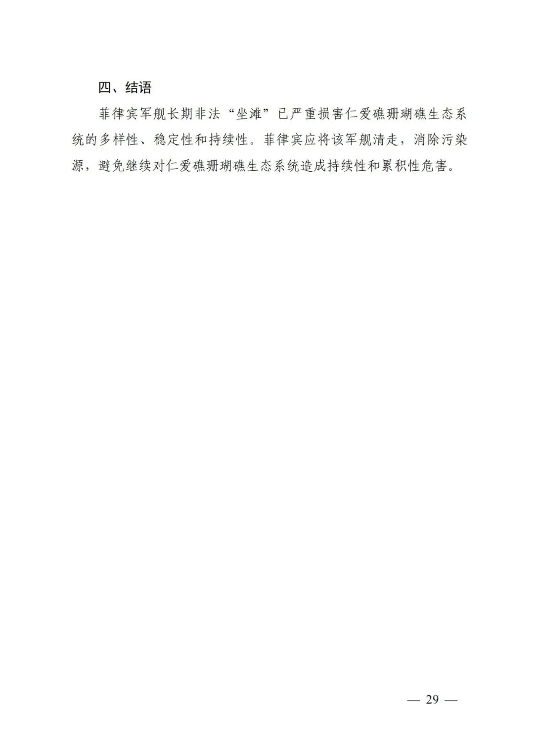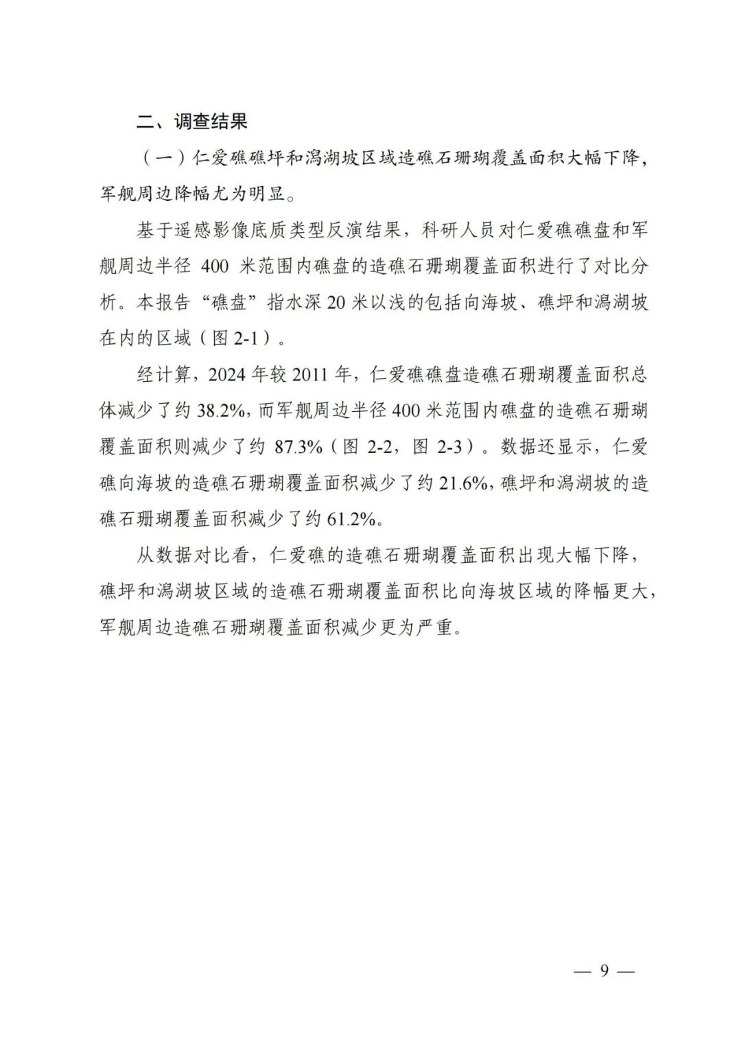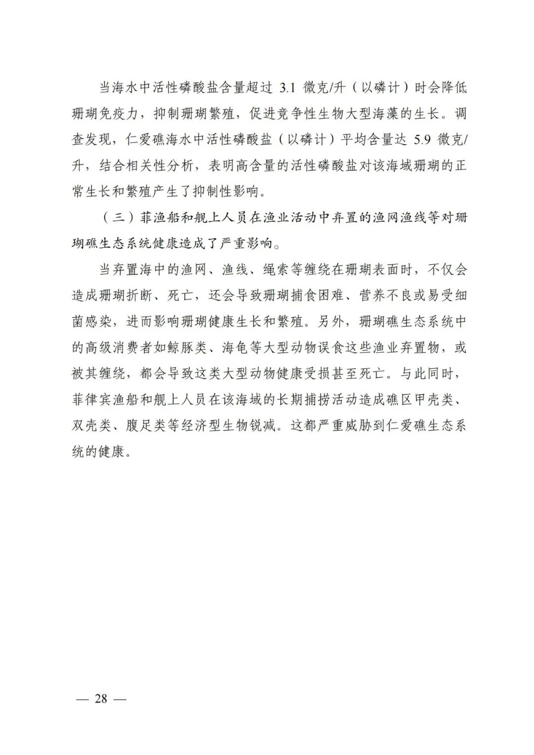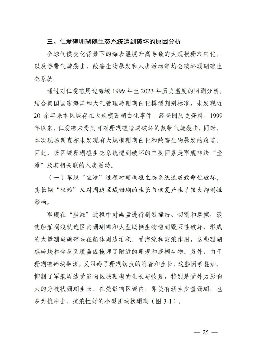 (中文版全文)《仁爱礁非法“坐滩”军舰破坏珊瑚礁生态系统调查报告》