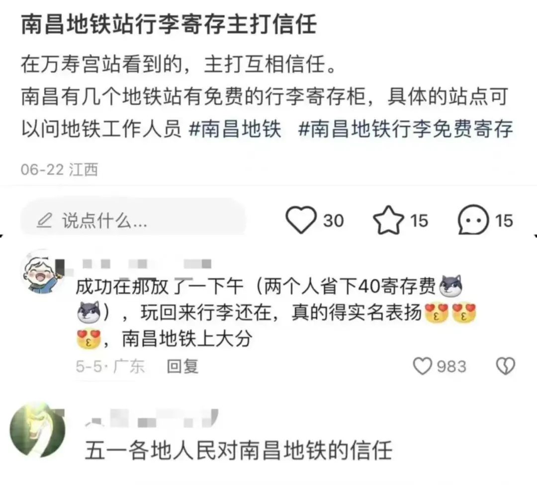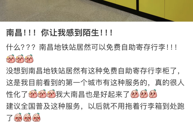 南昌地铁“阳光寄存”上线以来持续获得高赞
