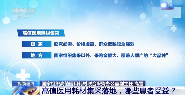 国家组织高值医用耗材联合采购办公室副主任 高雪:我们集中带量采购主要聚焦的是用量大、总金额比较高的产品,也是患者呼声比较大的产品。